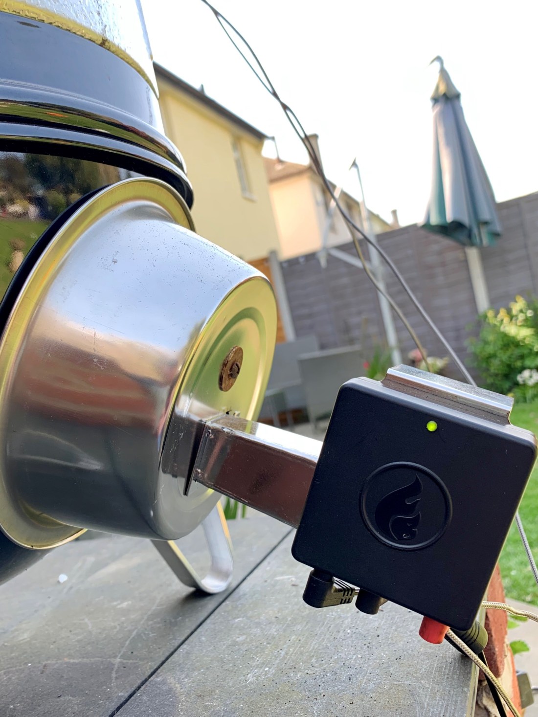When you come to use the Flameboss, you just plug in the temperature sensor and the food sensor, set your desired temps on the app and away you go. All the automation is done via the Flameboss app which is very easy and intuitive to use.